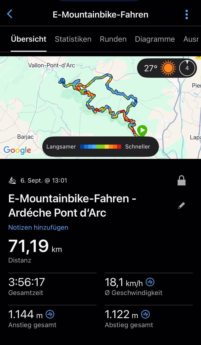 Heute bin ich mit dem Fahrrad zum Pont d‘Arc gefahren. Es ging ganz schön bergauf, aber dafür auch wieder schöne Abfahrten. Von den Höhen hatte man tolle Ausblicke auf die Ardèche und dieLeggi altro