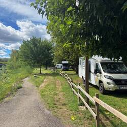 Vom Lac de Sainte Croix sind wir noch ein paar Kilometer weiter gefahren auf diesen kleinen Gemeinde Stellplatz. Der liegt an dem zur Zeit relativ trockenen Flussbett der Asse.