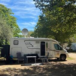 Ein schöner Campingplatz inmitten einer riesigen Ferienregion. Zur Zeit herrschen noch sommerliche TemperaturenLeggi altro