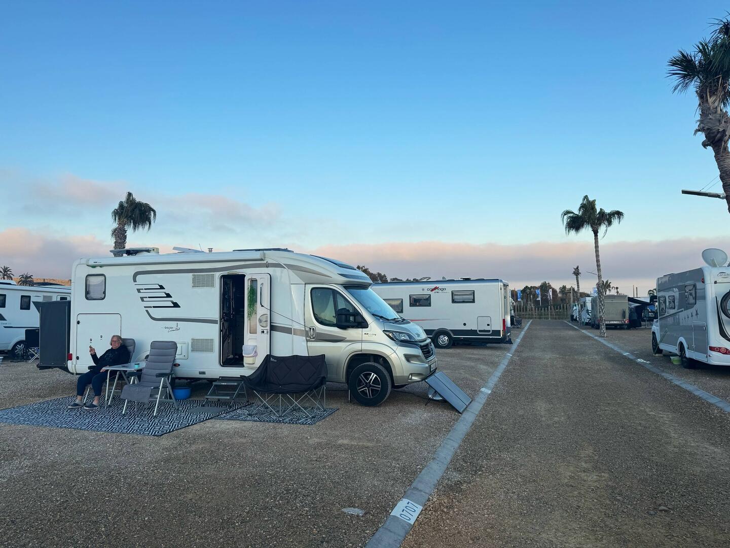 Wir sind seit gestern auf dem Stellplatz Los Narejos am Binnenmeer Mar Menor.