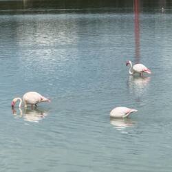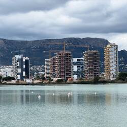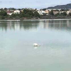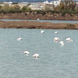 Heute war noch mal ein Spaziergang zum nördlichen Strand angesagt. Der führte uns an der Saline von Calpe vorbei. Auch hier stolzierten Flamingos im flachen Wasser herum, immer mit dem Kopf imLæs mere