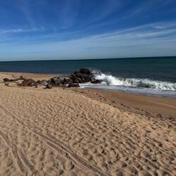 Da man hier nicht alles zu Fuß schaffen kann, habe ich mich aufs Rad geschwungen und bin zuerst zum nördlichen Strand gefahren. Hier war auch schon ganz schön was los bei 18 Grad. Hier gibt es einLæs mere