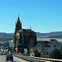 An einem dampfenden Kraftwerk vorbei🙈 und in Metz an einer Kirche mit Autobahnanbindung 😂.