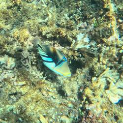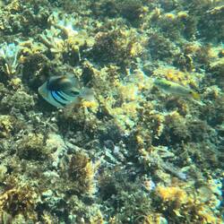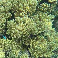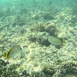 Swimming out ~100 yards over sea grass, we found this beautiful soft coral area. Regretfully, the locals are most likely spearfishing as we saw very few fish. But the coral was very much alive andBaca lagi