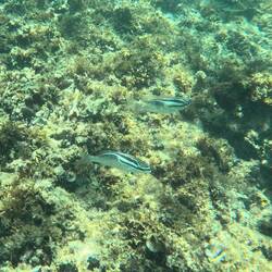 At the end of our walk, we hit the water for a bit to try to beat the heat. Mark grabbed some cool pics while snorkeling. And check out Mark's video of a local sea snake. It's technically called a NewBaca lagi