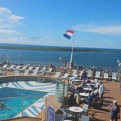Some cruise ships have interviews with the entertainers. We really enjoyed those on Volendam; Westerdam wasn't as consistent. But tonight they interviewed the house band that we have found to be theBaca lagi