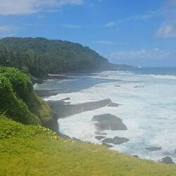 Arriving in America Somoa, we first attempted to rent a car, but there were no cars available. So Plan B: a local tour bus; $20 per person for a 3 hour tour. Regretfully the tour only covered the westBaca lagi
