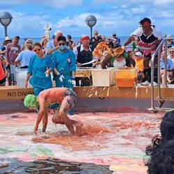 The King Neptune ceremony is a tradition performed aboard ships when crossing the equator, marking a sailor's first crossing of the line. It involves sailors, often referred to as "Polliwogs" orBaca lagi
