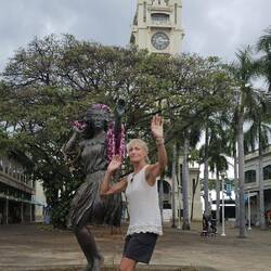 Walked 4 miles Waikiki beach from the Hilton Hawaiian Village (it's been here since 1955!) to Diamondhead Vista. Lunch at Tiki's then headed back to the boat.