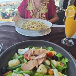Na een lange zeeweg met heel veel bochten aangekomen in Tamri. Een ruige kust waar het prachtig is. Onze slaapplek is natuurlijk ook heel bijzonder, al douchen we koud en is het eten echt vreselijk.Read more