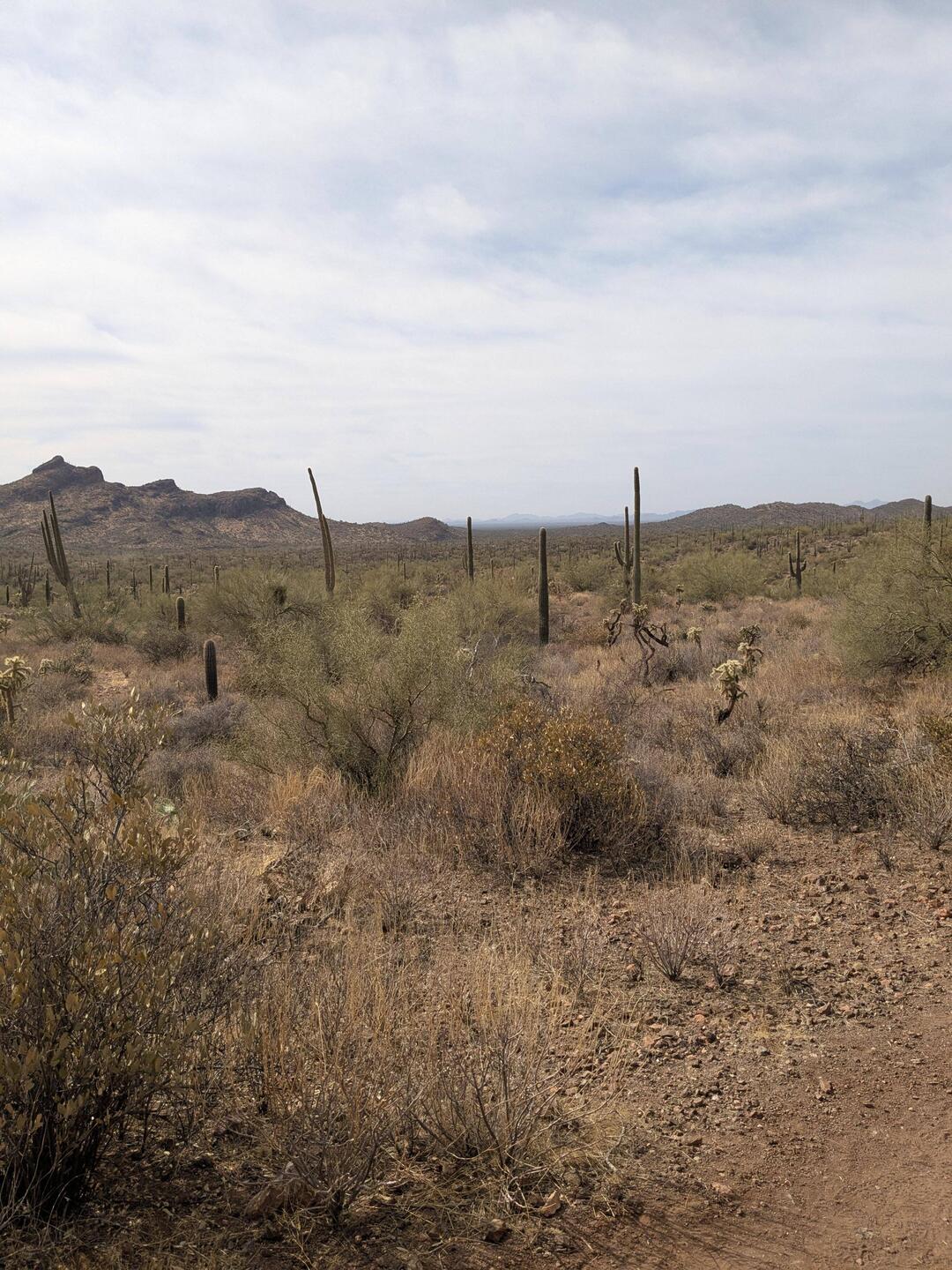 We decide to walk the opposite direction today from the same starting point as yesterday by the Tumacacori site. Beautiful day, we did get warm.