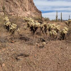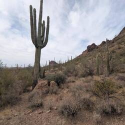 We decided to walk the Lost Goldmine Trail to the Turks Head. It was 64⁰, plenty warm for a walk in the desert. Before we got to the parking lot, a squadron of javelinas crossed the road! Adults,Leer más