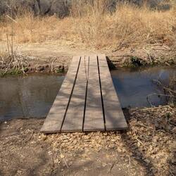We went on our usual Anza Trail walk today. We cross the river on 4 boards and then turn around at a gate about . 25 miles later. If we go thru the gate, we will end up at the Tumacacori Mission. NoLeer más