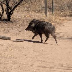 Today we finally saw javelinas that were close enough to photo! Clear day, rather warm when we returned. Heard and saw a northern cardinal and some variety of bunting.