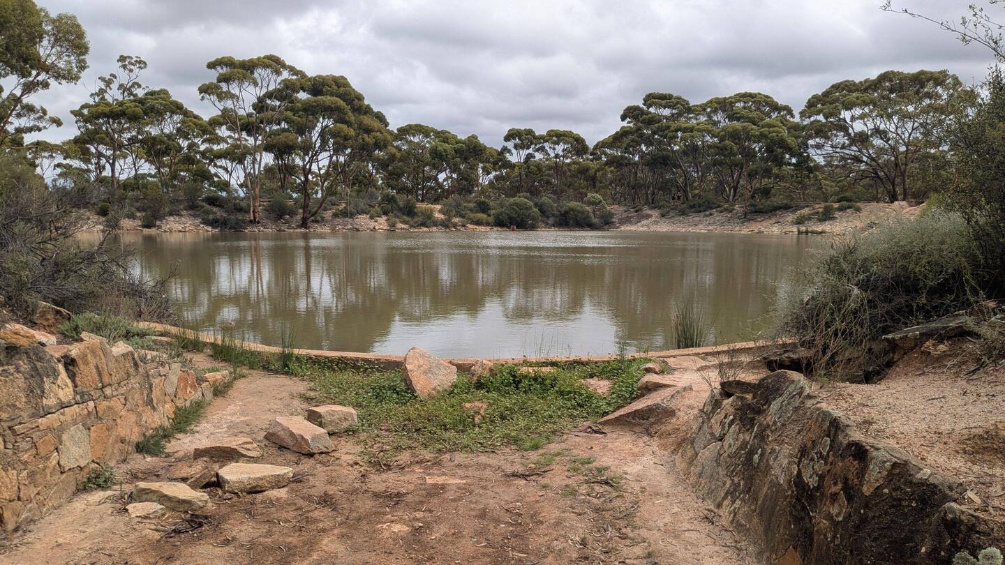 We stopped at lunchtime for the day. This is a big and pretty free camp area around Bromus Dam. The dam was built in the 1920s to service steam trains. A top spot despite the healthy fly population.