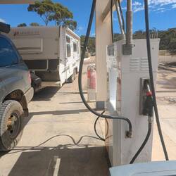 Camped here for the night. Today we followed heavy rain, encountering wet roads and big puddles without actually getting rained on. Drove through Norseman ($2.29) and on to Balladonia ($3.16). TheRead more