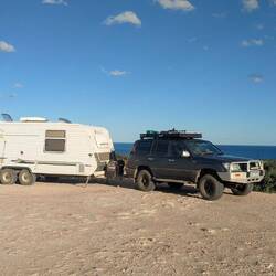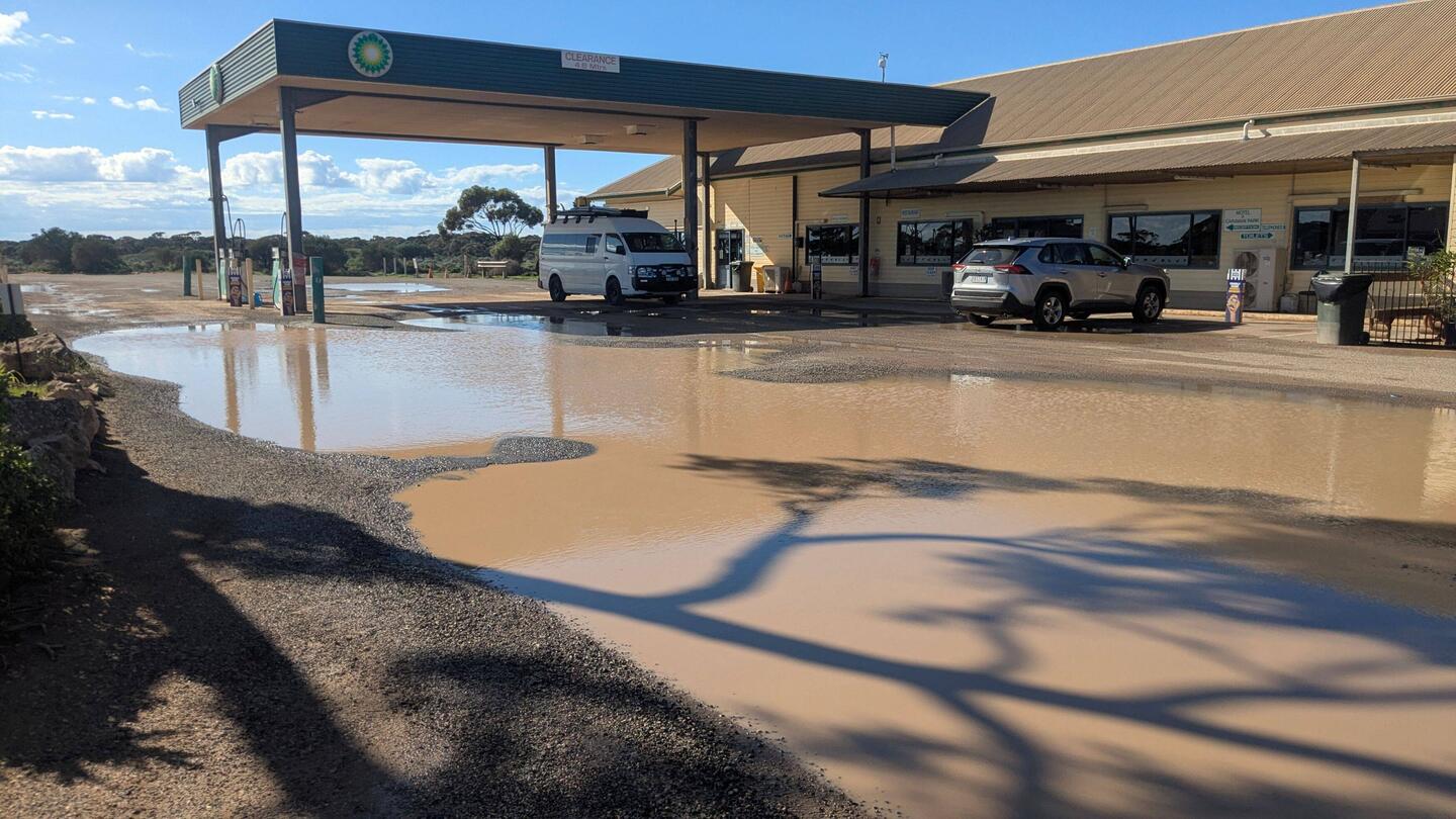 We set off after a week in Esperance. We had to pack up in heavy rain, which followed thunderstorms throughout the night.