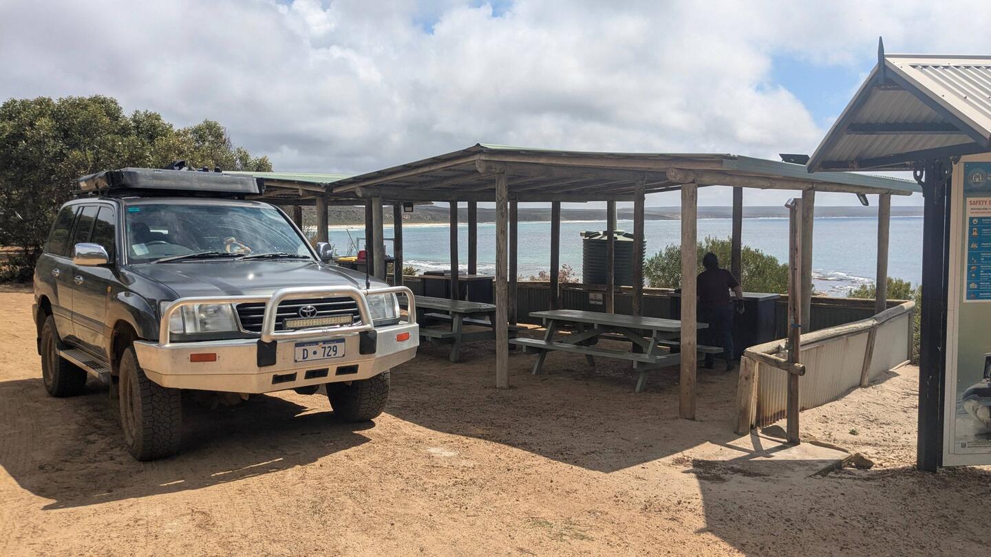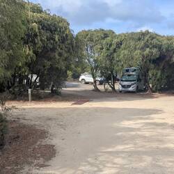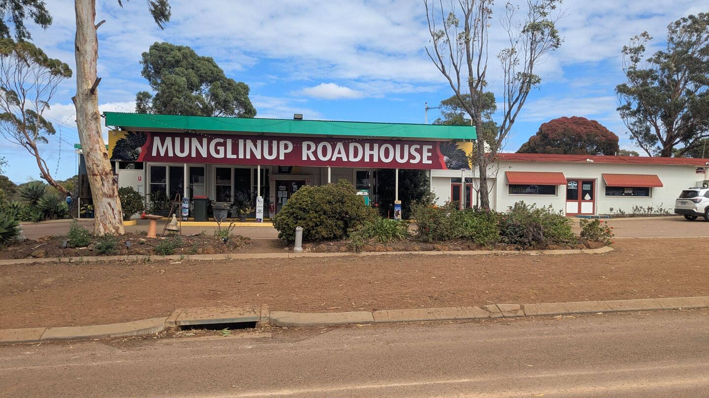 A lovely overnight stop before Esperance. Opposite the roadhouse (take aways, a few groceries and alcohol) with toilets and a dump point. Road noise from the hwy but that never bothers us.
