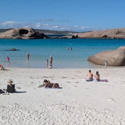 We drove back to Wellstead and on through along a 20km gravel road to Cape Riche. Here there is another nice camp, about half full, with good beach access and some lovely white sand beaches, rockyRead more