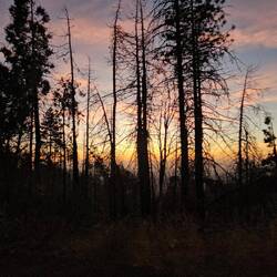 La vuelta la hicimos rápido serpenteando por un camino sinuoso para llegar al jardín de Moro Rock, un stock granitoide enorme en el que ensamblaron y cavaron una escalera de 80m de altura para ver el atardecer. Mucha neblina que desgraciadamente tapó parte del paisaje lejano, pero subir corriendo los 300 escalones en 9 minutos nos regaló un muy lindo atardecer lleno de colores anaranjados, rojizos y rosados que justificó enormemente el esfuerzo. Macana que habíamos conseguido agua para el mate y en el apuro nos dejamos el termo en el auto…