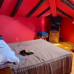 And now we are in León, a beautiful city, with a spectacular cathedral, for 2 nights. Apparently they talk about a heatwave here, but it is cold in the morning (sometimes single figures) and gets to the low to middle 20s in the heat of the day, and by 6pm people are putting on jackets, quite cold…we are in the same hotel as 2018…an old building in the centre, and our room is on the 3rd floor, the top and we have sloping beams and a skylight…very charming.