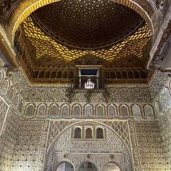 Then time for lunch and we went to a great place where we hope to go to dinner soon, and had, finally, my chiperones a la plancha which I have been fantasising about, but which we never seem to find available. Delicious, and some cod croquetas. By then it was 3pm and time for our Alcazar visit…and of course it was just amazing. We remembered the exquisite and ornate Islamic decoration and carving…very similar to the Alhambra. So we are satisfied. The only thing missing was that the fountains in the courtyards weren’t founting…I don’t know why. I remember them as the peaceful sight and sound in the courtyards…maybe they worry in these mad times that someone will drown…anyway, after admiring the building itself, we went into the gardens of the alcazar and sat on a seat and had kindle time. Peacocks and ducks, people wandering…just a lovely time. Now back, via some hydration, and will soon set off for dinner. And tomorrow a new adventure - to Granada.Les mer