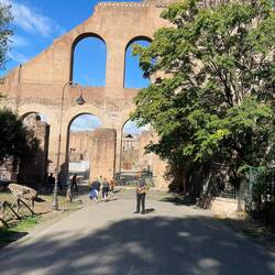 Well now back from dinner and it is quite a story…Amr had read about an interesting good restaurant he wanted us to try…said it was quite a long walk, so that was ok - we do walking…so we set off, following the Google instructions on Amr’s phone, walking in a direction we’d never been before….we walked and walked, through unknown parts, not terribly upmarket, and I was wondering how it would be returning later in the dark, though most was ok..we passed important looking ruins and wondered where on earth we were…finally we came to the restaurant - quite small - to find it was fully booked and no chance for tonight…annoyingly they wouldn’t even take a booking for another day - said we needed to do it online (Amr had tried before and had difficulty)…so we trudged back, the upside being that we knew the way and it wasn’t late enough to be spooky! And after all that we ate at a little trattoria down the road from our hotel. And with great difficulty we did manage to book online for Sunday Oct 9 when we are back in Rome and the last night before we fly to Cairo. It had better be good!! One last thing - I looked on the map and found that we were out beyond S Giovanni Laterano, and some of the ruins were the porta s Giovanni and the city walls. This evening stroll took up our day’s total to 20 kms!!Læs mere