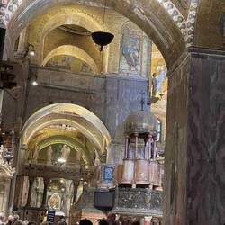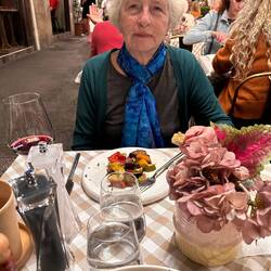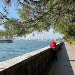 Set off straightaway as we needed to walk after such a long sit, and wandered and got a bit lost, and found ourselves, walked to S. Marco piazza and along the riva Schiavoni, beyond where the thickest crowds are…it is milling with people in the main popular areas, and very slow moving along the narrow streets…just have to be patient and enjoy. We realise we have only been here in winter when crowds are definitely limited. But it is fun and gorgeous. We found and booked our favourite restaurant - still going strong - where we used to come frequently…asked for an 8pm booking, but could only get 8.30 (glad we thought to book!)…but we will never starve - there are so many eateries everywhere, and specially round where we are staying. It is not raining, and in fact there is high cloud with small blue patches and brightness shining through, making a magic light. Just lovely.