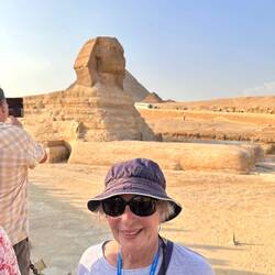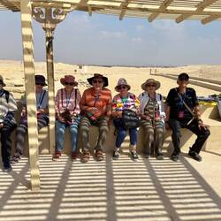Then lunch at a nearby very nice restaurant (where you could have light meals) and that was leisurely and relaxing. Then we went off to the Egyptian museum - the new grand museum is still not opening till maybe next year, so this is the one in the city that we have been to before, which still has many exhibits despite many treasures already being moved…it still feels full of stuff! So our guide took us on a tour of highlights which was fabulous- as if you stopped at every showcase you’d be exhausted trying to take it all in. Ended seeing the jewellery of Tutankhamen and also the 2 innermost coffins - amazing stuff, and we arrived back not too overwhelmed, just right! Another great day…BUT tomorrow we will get a wake up call at 3am to leave at 4am to go to the airport for our flight to Aswan!! So an early night tonight, and more adventures tomorrow.Læs mere