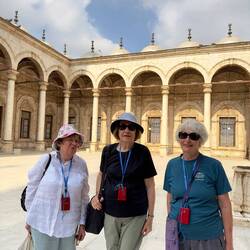 Our first stop was the citadel - which is high up on a hill with a great view over the city, and where there is the Muhammad Ali mosque - a beautiful mosque build by Saladin and a copy of the Blue Mosque in Istanbul, though I think I heard is a bit smaller. Then we were taken to the market area, where our guide said has junky souvenirs made in China so to be aware! It was not the market area I had remembered with the Islamic gate and architecture, and I hope Omnia and Amr can maybe take us to that part when we get back to Cairo after the tour. So while we had free time there Amr suggested we visit another mosque nearby, and he and Omnia talked to the man on the entrance…this was not a tourist show mosque, and we women had to go in a separate entrance, and we found we were in a little women’s section, separated with a trellis from the main body of the mosque, and there were many women sitting on the floor, with children or quietly chatting with friends, reading or praying….I think it is a place to escape from the men! Anyway, we did look a bit odd coming in, but we quietly took a place in a corner (Omnia did not come in as she wanted to do some shopping!) and Louise and I sat on the floor. The women were sweet and friendly and made eye contact and we even had a sort of conversation with a girl who was playing with a small child…she showed us photos of different relatives and ended up taking a selfie with Louise and me! A very different experience.