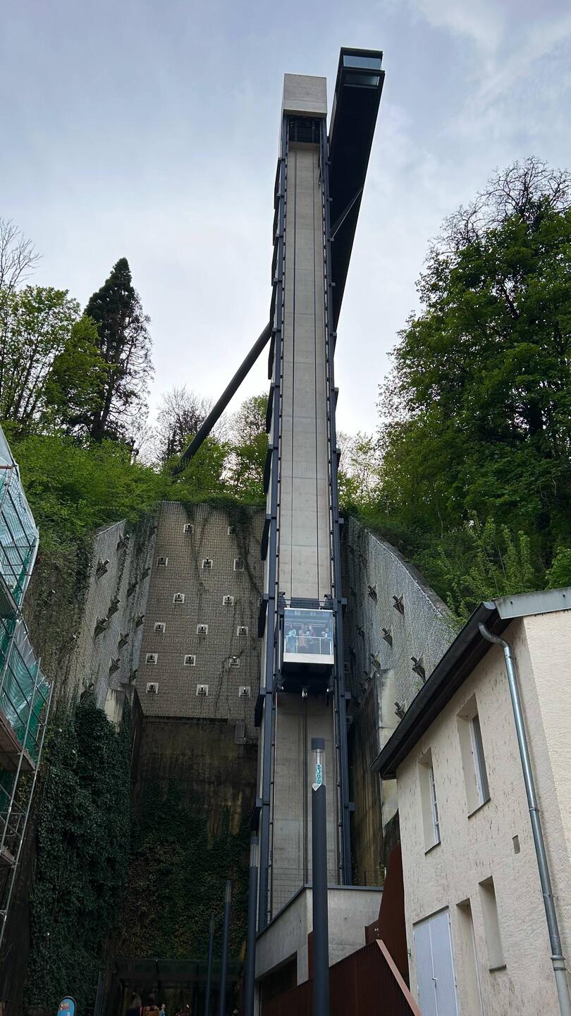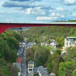 De panoramische Pfaffenthal lift brengt je naar een hoogte van 71 meter. Je geniet hier van een prachtigLæs mere