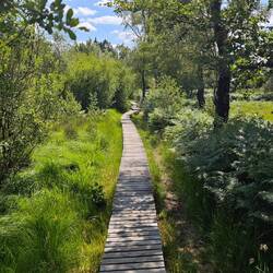 Danach verlässt man so langsam die Bebauung von Roetgen. Gleich hinter der Brücke geht es links auf einen schönen Naturweg in Richtung "Hohes Venn" - ein Hochmoor, mit riesigem Wasser- und CO2-Speicher!