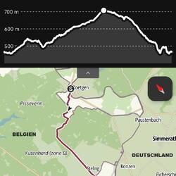 Um kurz vor 13 Uhr starte ich dann meine Wanderung - etwas spät, aber die Anfahrt zieht sich. Die ersten 500 m läuft man durch Wohngebiete von Roetgen und unterquert dann die alte Bahntrasse "Vennbahn", die zu Belgien gehört. Dahinter ist man wieder in Deutschland. Genauer gesagt in einer deutschen Exklave - denn Belgien umgibt diesen Teil von Roetgen komplett.