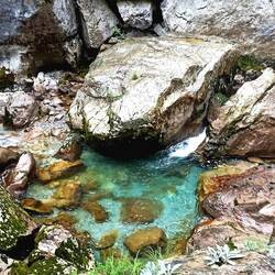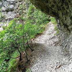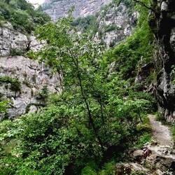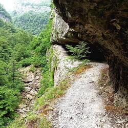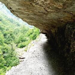 Nach etwas knapp 1.5 Stunden (ca. 5 km) erreiche ich das "Gate of Wishes" - ein von der Natur geformtes Tor! Auf montenegrinisch "Kapija Zelja". Grandios der Ausblick durch den Bogen auf den Fluss.Baca lagi