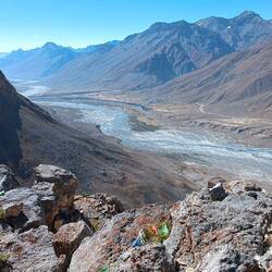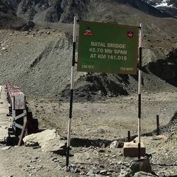 Ab dem Pass bzw. Batal folgen wir dem Chanab - den Spiti haben wir jetzt hinter uns gelassen. Die Straße ist ab hier in einem katastrophalen Zustand. Ab Batal folgt die Straße fast parallel demRead more