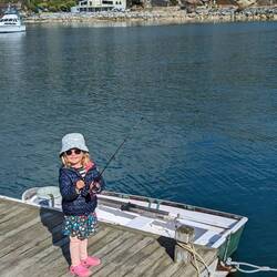 Great photo. Rosie must be very happy with her new rod; nicely matching the crocs!
