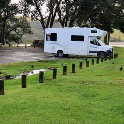 Found a cool campsite here, looking forward to exploring in the morning when we can see it in daylight! It gets dark around 5.30pm here and is definitely much cooler. When we pulled up at reception to check in there was a Wallaby casually hopping about by the bins.Læs mere