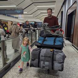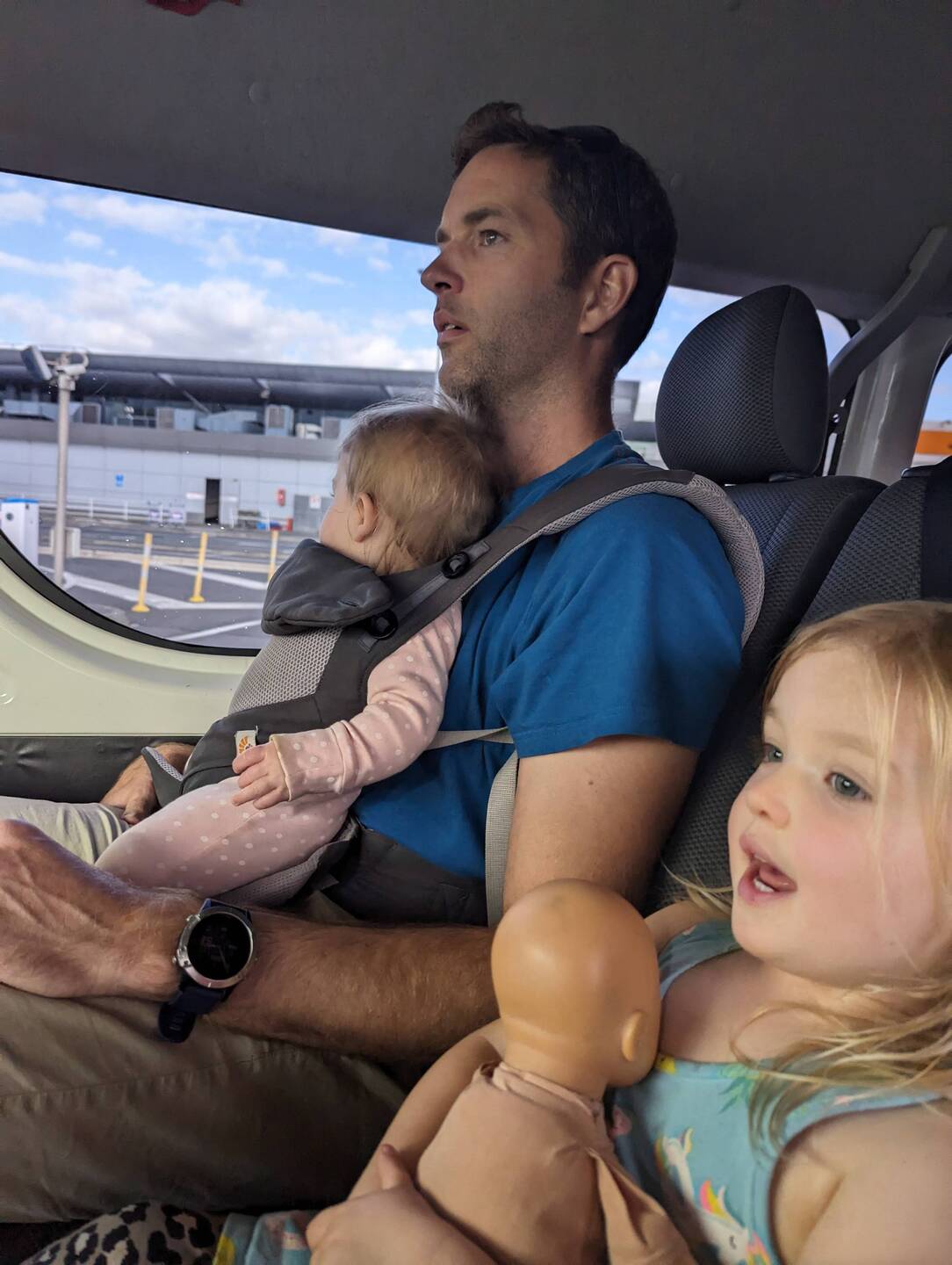 We arrived at Auckland airport around 7am to check in but didn't leave until about 3pm in the end! The girls were pretty tired by the time we arrived in Melbourne 4hrs later, but they both did really well. We missed our connecting flight to Hobart because of the delay, so Trailfinders arranged for us to stay in the airport Holiday Inn and rebooked our flight to Hobart for lunchtime today. We all woke up around 4am because Melbourne is 2hrs behind NZ. Spent the morning hanging out at the airport hotel. Poppy charmed the staff as usual and Rosie had a meltdown because she was tired and hungry!