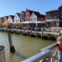 Stellplatz am Hafen, nahe der hübschen Altstadt. Immer wieder schön. Durch die Ferien waren viele Familien zugegen.
