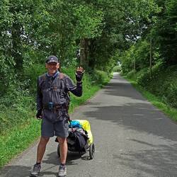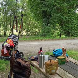 Parcours avec chargement comme lors du voyage , remorque de 13 kg pour moi à la ceinture, sac de 15 kg pour le fort et courageux Mickaël (effort plus intenseRead more