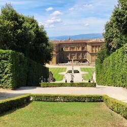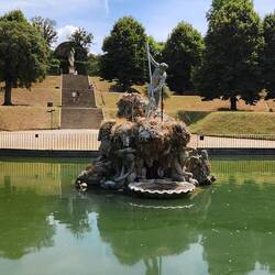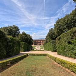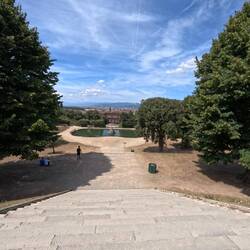 Our last stop was the Gardens of Boboli. Not sure why we were walking outside when it was 105 but we did. The gardens were so big and spread out. The famous Neptune fountain was a disappointment butLeia mais