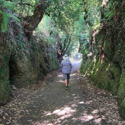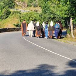 Here in Spain, everything is measured in KM, so today, we walked by the 100 km post, and that's how many kms we have left to Santiago. Today was an easy day. We walked 13 miles with no breaks. There was some rain but pleasant. The next town that had any albergues available was another 8 miles out, so we decided not to push the miles today. We're gonna have to make up for it in the next 3 days. It was lovely coming up to a wild horse just hanging out on the trail. And of course, we love to pet all the pups. One particular dog loved William. Speaking to other pilgrims who have been walking for a few weeks, we all struggled with the new people who just started and are walking the last 100 kms. They listen to their music on loud speakers, they don't say hi or acknowledge other pilgrims. its hard to describe how the Camino has changed in just one day. I know they have their own Camino to walk and discover but this crowded Camino is an adjustment for us veterans. I also know there is room on the Camino for everyone. My mind just has to get ready to join the world again.Les mer