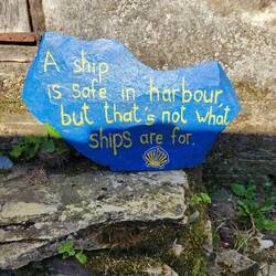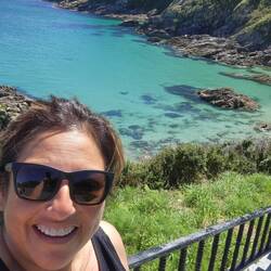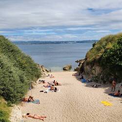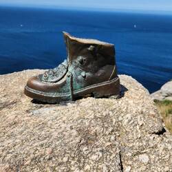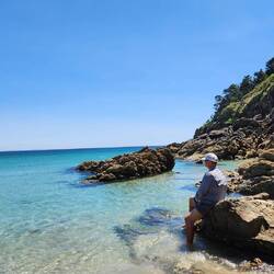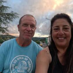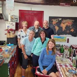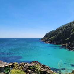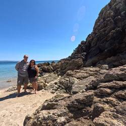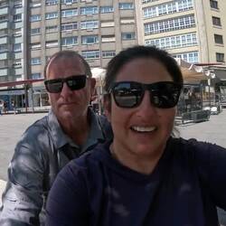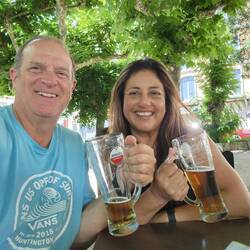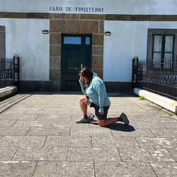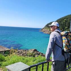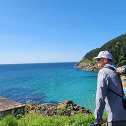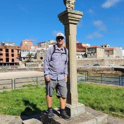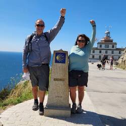 The end of the world is what Finisterra stands for. There is also a 0 marker here. What a beautiful coastline. We went into the water waste deep, and it's so much colder than our coast. It's very refreshing. Their waters are so clear and colorful with their sand just the perfect color. If you saw the movie The Way with Martin Sheen, this is where he comes to. It's a good movie if you haven't seen it yet. It's based on the Camino. It's always great to run into more trail family we had not seen in a long while, especially since we basically said so long to everyone the night before.Les mer