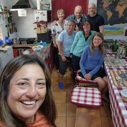At our albergue, we had a communal dinner made by the owner Marchelo. I met Kristine from Nebraska, David from Northern England, Lee'Ann from Africa, Katie & Nedie from France and Marchelo from Tuscany. All beautiful souls breaking bread. The picture of Spain shows all the different Camino that people can do.Les mer
