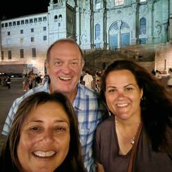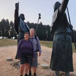 Wednesday morning into Santiago started at 5:30 am with only 6 miles to walk. 9 of us taking our time, enjoying the last few miles. Had a good cry at the top where the 2 pilgrim statues are either saying goodbye or saluting Santiago as the sunrise began. Didn't want to say goodbye or have it come to an end, but I quickly realized that my camino of life continues and there is so much to do and see. Saw more little churches, statues, and government buildings. Santiago is a beautiful city. Our hotel was in the outer area in the party quarter. The 3 our nap was fantastic and needed so that we could celebrate St. James late into the night.Les mer