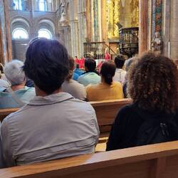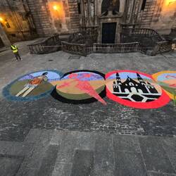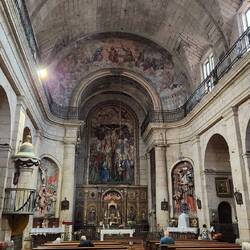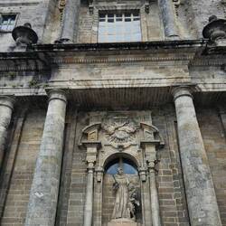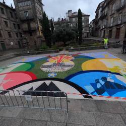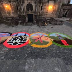 The festival of St. James is a huge celebrated holiday. St. James was one of Jesus' 12 apostol. The King of Spain was coming into Santiago the following day, so the decorated streets with murals made of flowers and natural materials were outstanding. We attended the pilgrim mass at noon, expecting to see the swing of the Botafumeiro, but it was a no go. It was still a beautiful mass. The cathedral is indescribable.