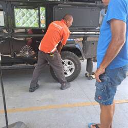 ... und eine Reifenreparatur später. War ein Nagel im linken Hinterrad- halbe Stunde war alles fertig und Reifen geklebt!