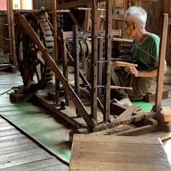 With our guide we travelled in a long boat boat to see The weaving workshops. It is located in In Paw Khon village which is a floating settlement made up of tall stilted houses connected by narrowもっと詳しく