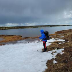 Das Fjäll zeigte sich uns heute sehr Abwechslungsreich mit Altschnee und Flußquerung.