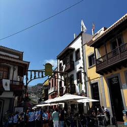 Aufgrund der Spontanität mussten wir unser Frühstück hastig runterschlingen, da der Markt laut WWW nur bis 14:00 geöffnet hatte. Mal wieder ging es Berge ⛰️ runter und vor allem hoch. Wir waren natürlich nicht die einzigen, die nach Teror fuhren und aufgrund einseitiger Straßensperrungen ⛔️ durch die Feierlichkeiten wurde die Straße noch verstopfter. Die eingebüßte Zeit auf der Straße war aber kein Problem - wir konnten uns in Ruhe alle Stände und Läden ansehen und gar einiges erwerben. 😌